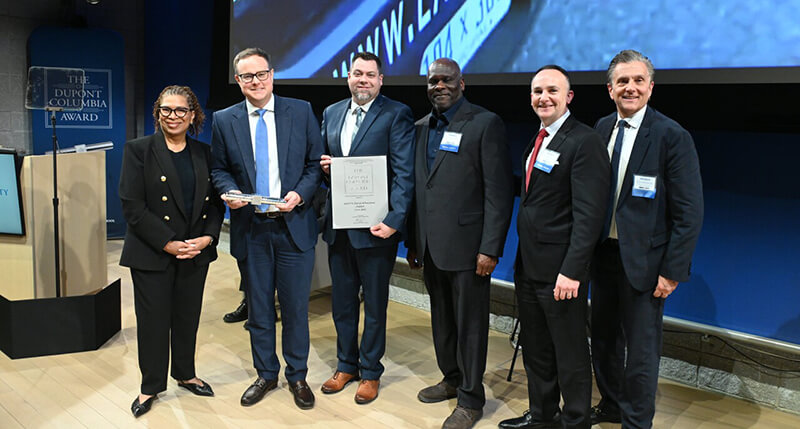 At a ceremony January 28 on the campus of Columbia University, investigative reporter Ross Jones, video editor Randy Lundquist, photojournalists Johnny Sartin and Ramon Rosario, assistant news director Ronnie Love, station manager and news director Tim Kochenderfer, and regional vice president and general manager Mike Murri were honored for the station’s reporting.