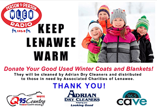 Drop off points for donated coats and blankets were set up throughout the station's coverage area including Faith Baptist Church in Adrian, Tuckey’s Big Boy in Tecumseh, Fall Fest at The Centre, Living in Lenawee Realty in Tecumseh, all branches of TLC Community Credit Union, Adrian Dry Cleaners and at the WLEN studios.